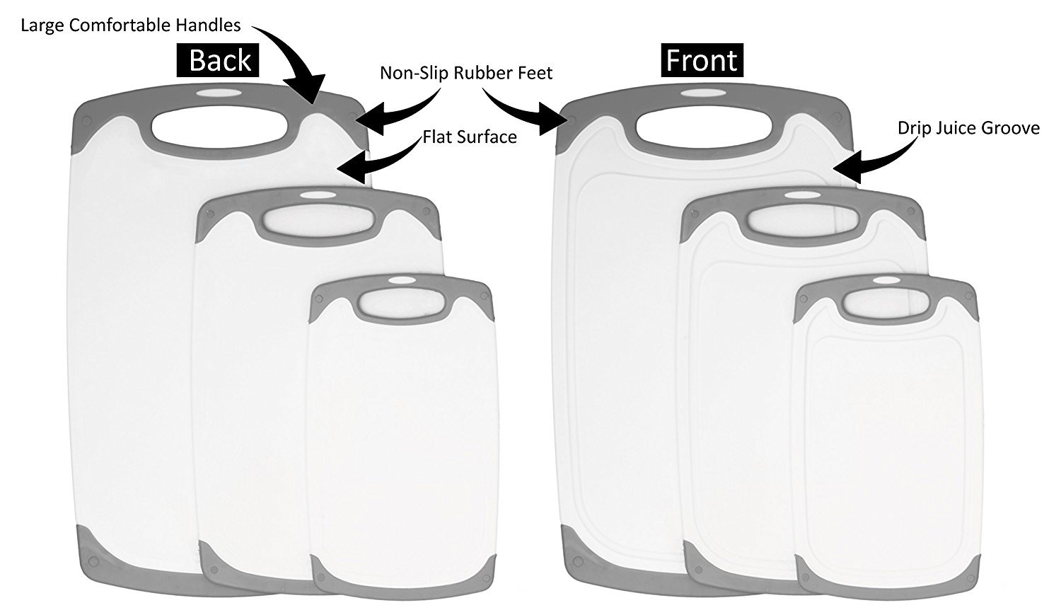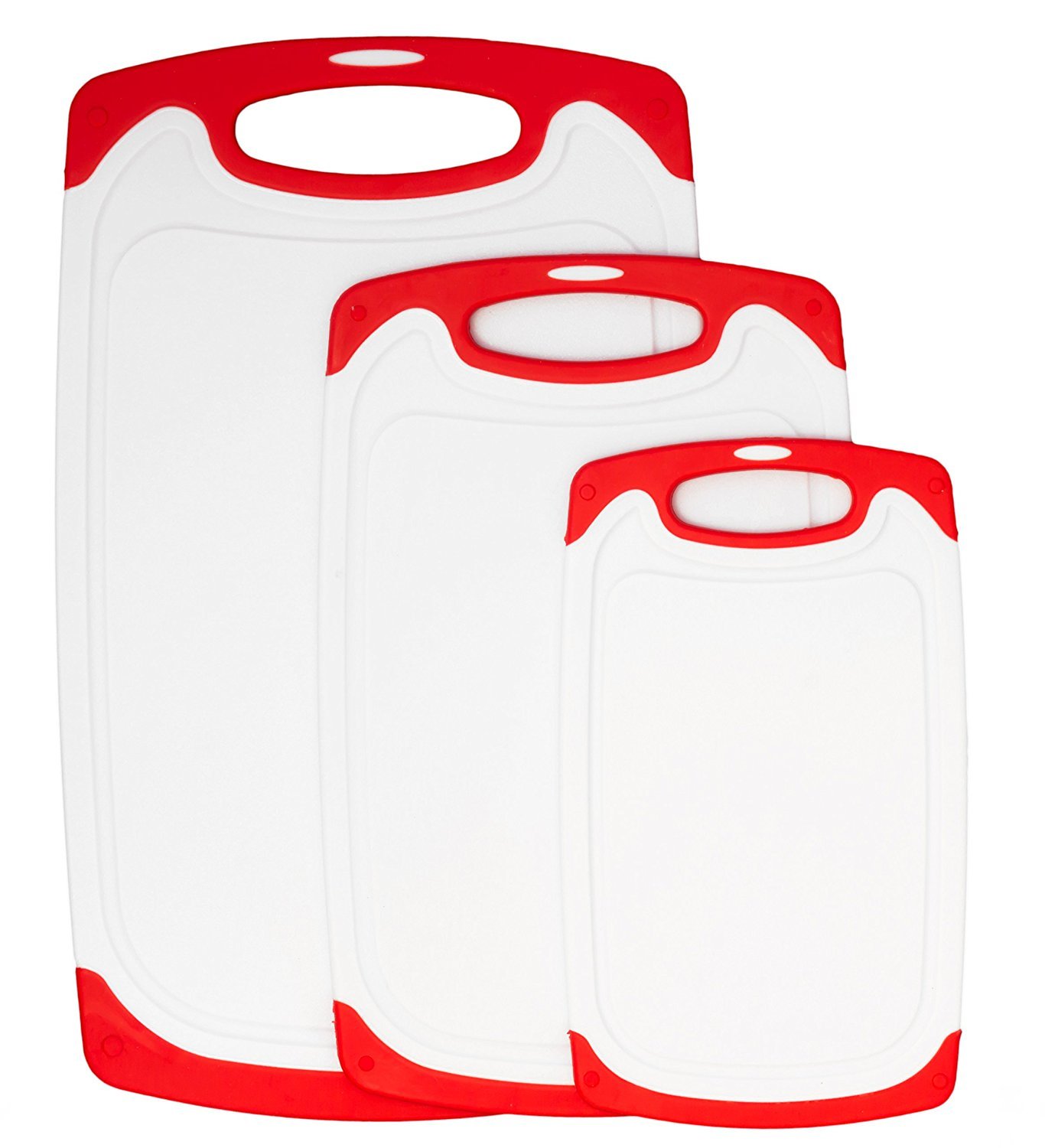 cutting boards sets come in 3 colors red gray and blue very cheap great product